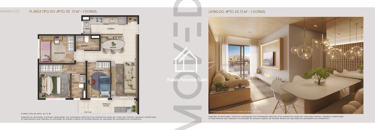 Abaixo Decorado de 72m - 3 Dormitórios