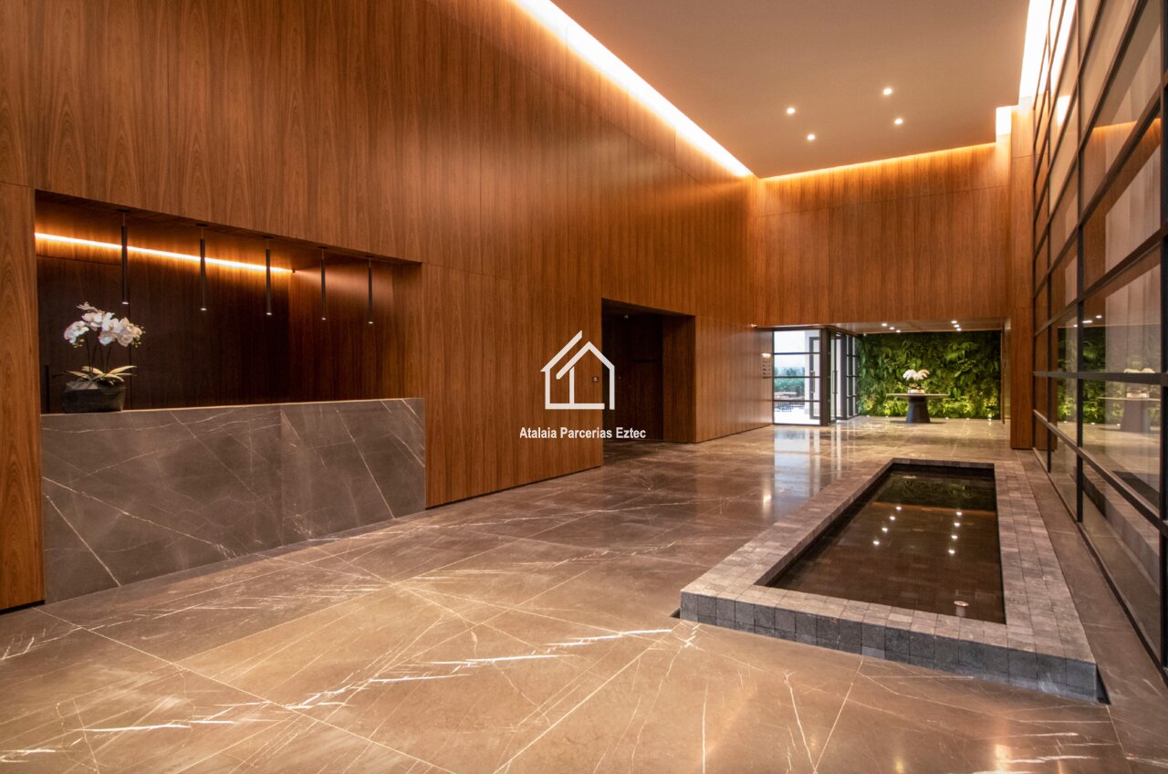 A torre icônica de 105 metros de altura apresenta arquitetura contemporânea e imponente, com fachada elegante e atemporal. Os apartamentos contam com living integrado, terraço social generoso, pé-direito elevado, hall privativo, dois elevadores sociais com biometria por pavimento e infraestrutura completa para automação residencial, ar-condicionado, aspiração central e área gourmet.
