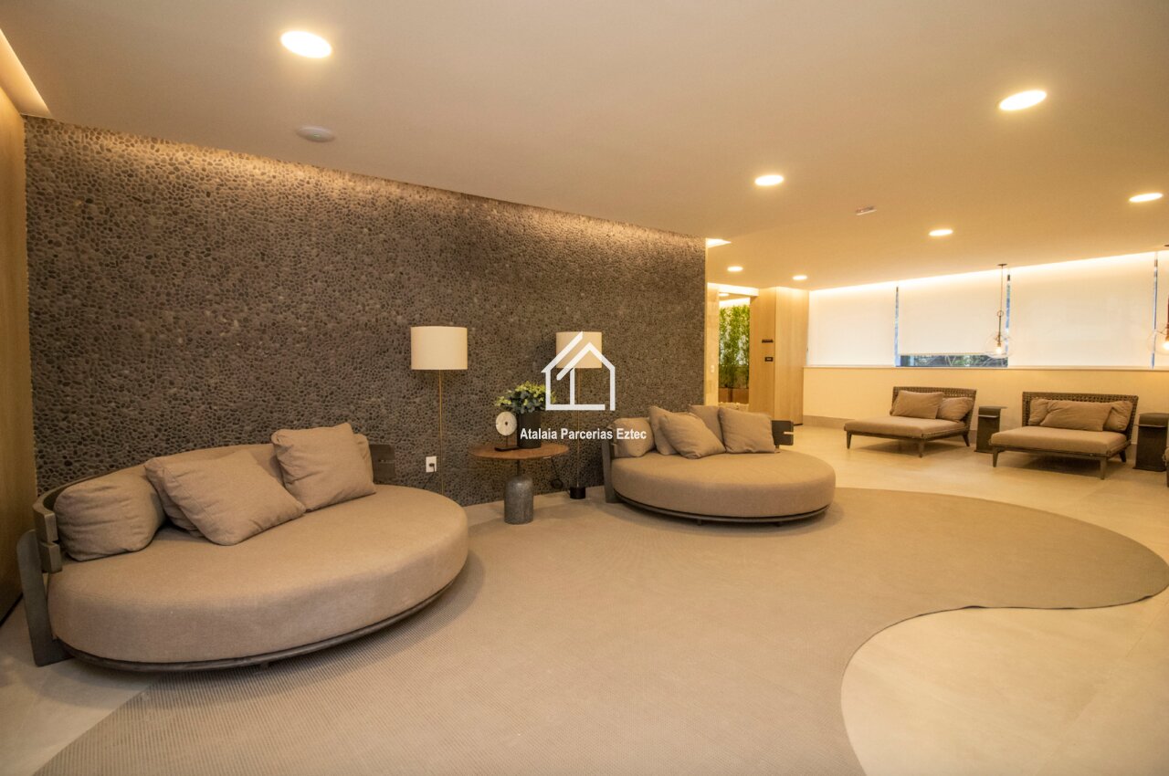 As áreas comuns, assinadas por João Armentano e Marcia Brunello, com paisagismo de Benedito Abbud, elevam o padrão de lazer e bem-estar: piscina adulto de 25 metros, fitness by Cia Athletica, spa com sauna e sala de massagem, salão de festas, brinquedoteca e praça de convivência com churrasqueira. A segurança é reforçada por guarita blindada e sistemas de controle de acesso.