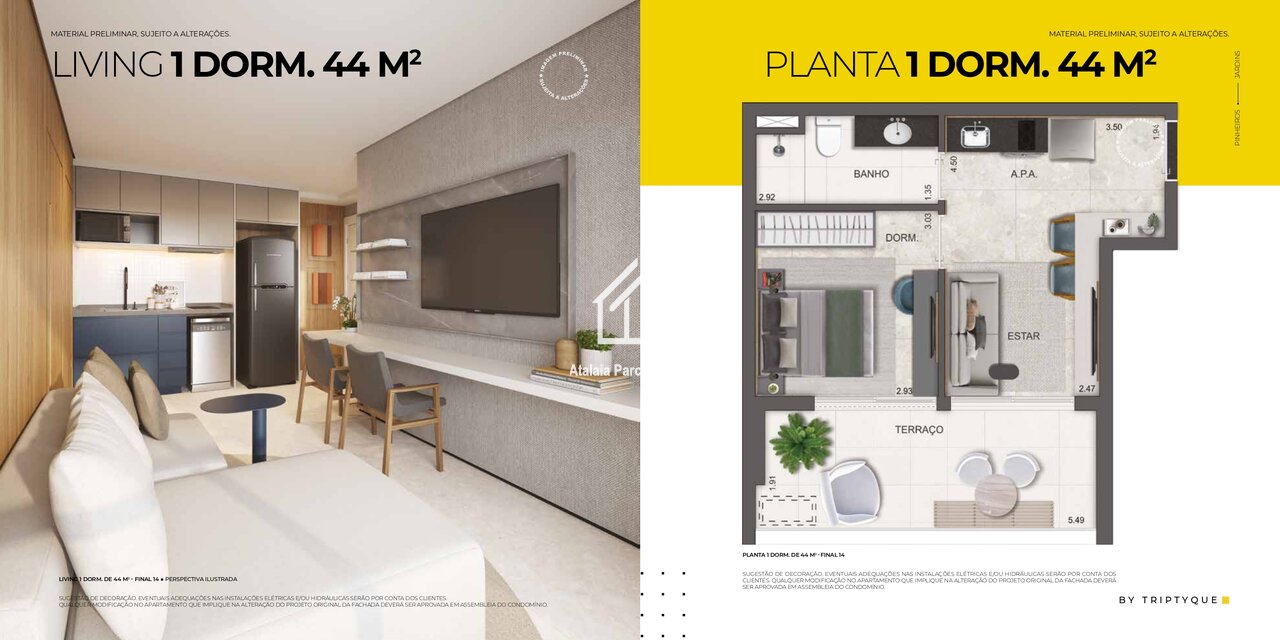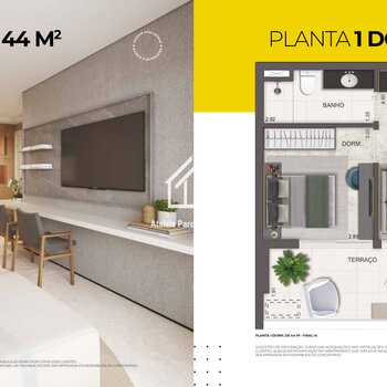 • Apartamentos de 1 dormitório – 44 m²