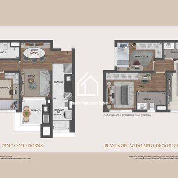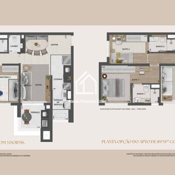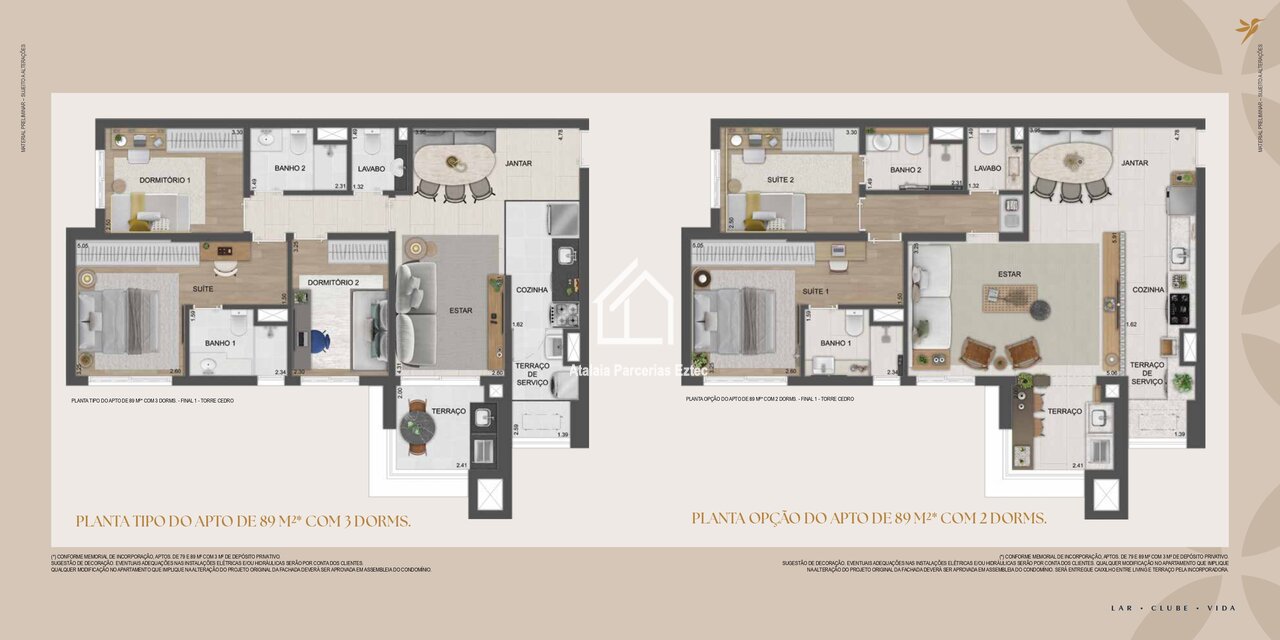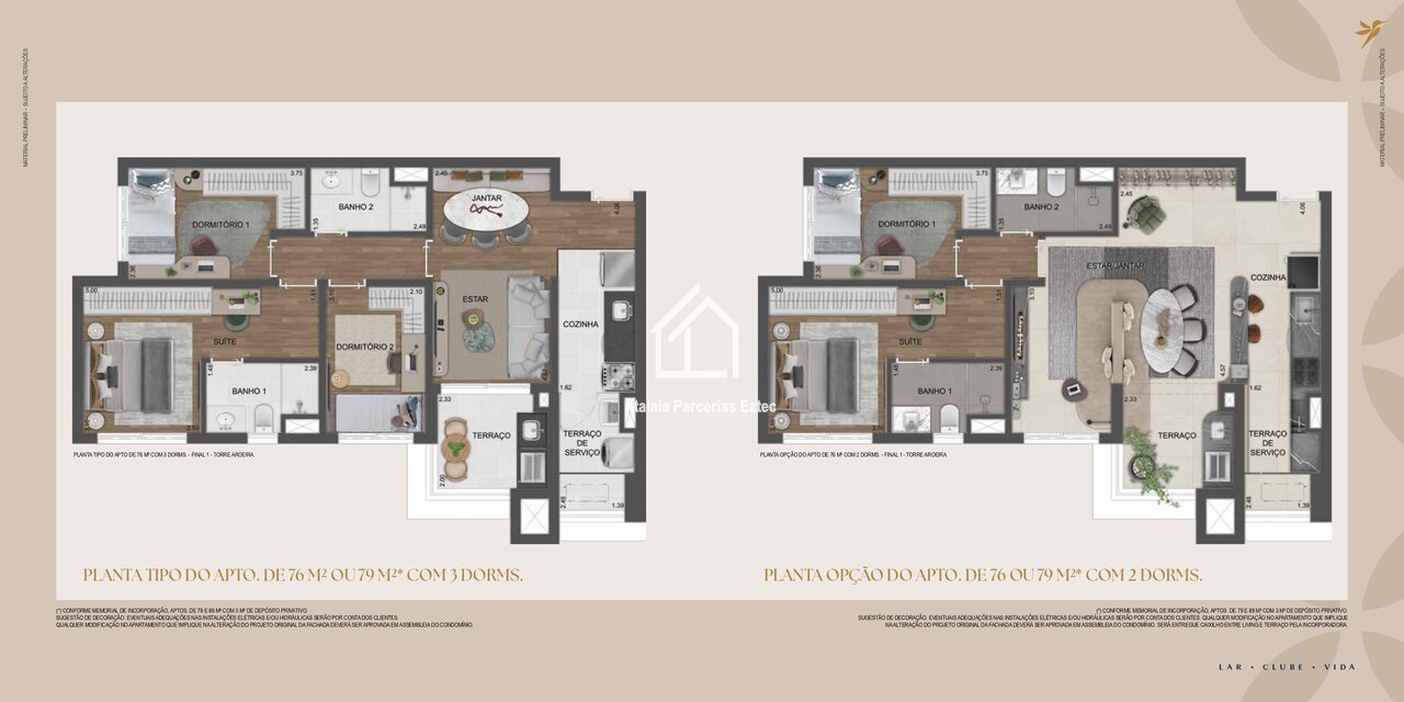 3º pavimento: - 3 unidades nas torres Aroeira e Buriti e 4 unidades na torre Cedro