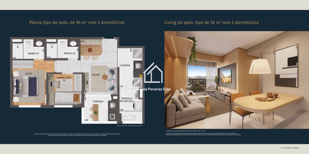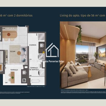 56m2 - 2 Dormitórios (1 Suite) - (1 Vaga)