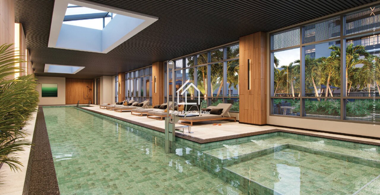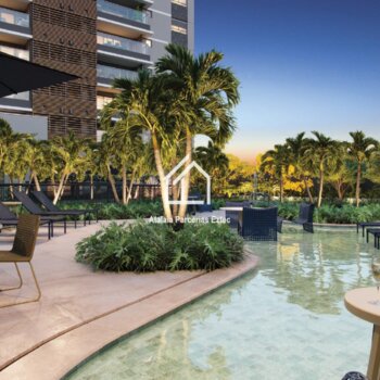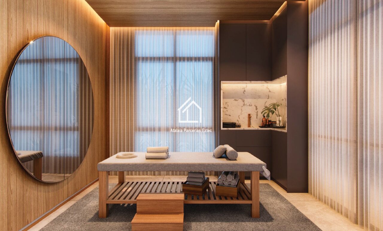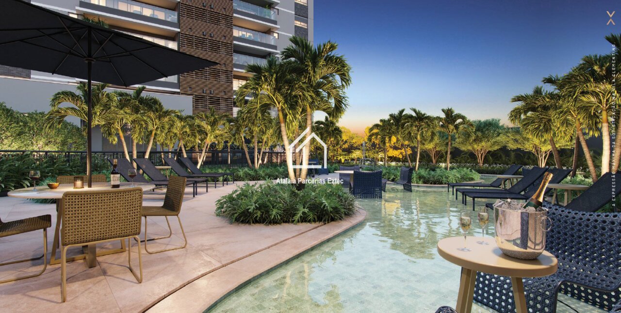 Os apartamentos possuem plantas amplas e bem distribuídas, com hall social privativo, terraço nivelado, alto padrão de acabamento EZTEC e infraestrutura completa para automação, ar-condicionado e conforto acústico. O lazer é um dos grandes destaques, com áreas internas e externas pensadas para todas as idades, incluindo piscina coberta de 25 metros, fitness assinado pela Cia Athletica, spa, quadra recreativa, espaços gourmet e serviços pay-per-use.