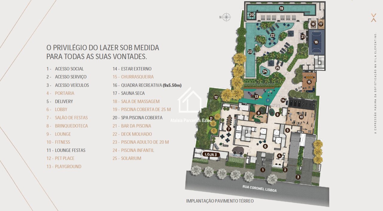 Implantado em uma rua larga, arborizada e extremamente charmosa — a Rua Coronel Lisboa — o empreendimento oferece privacidade, tranquilidade e fácil acesso às principais vias da cidade, além da proximidade com duas estações de metrô (Santa Cruz e Hospital São Paulo).